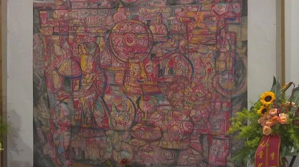 靳志强也分享了自己的创作理念和心得。《鼎盛》系列以公元前806年,西周宣王时期的青铜礼器为创作基底,通过 “由器入神” 的思路构建历代器物叠加的视觉形态,将中国画创作范式、东方美学思想与传统哲学内核融为一体。作品跳出 “光明与黑暗” 的符号化对抗,转化为传统与现代、本土与全球的交融共生,在古今对话与中西碰撞中,展现了中国当代艺术的独特视角。